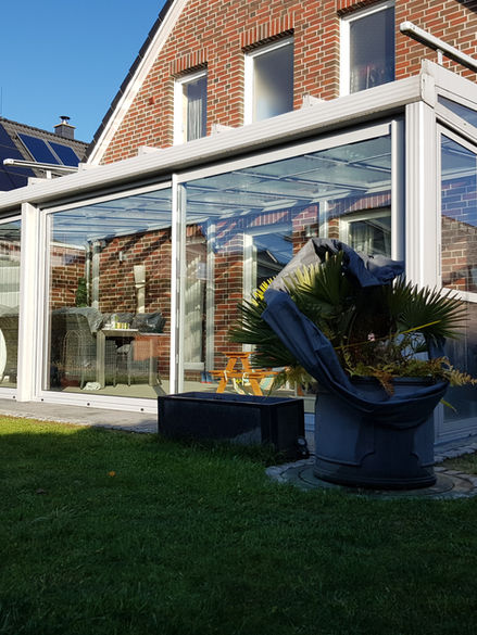 Kalt-Wintergärten / Glashäuser: Unsere Überdachungen sind jederzeit mit unseren flexiblen Glasschiebetüren zum vollständigen Wintergarten Bausatz erweiterbar.